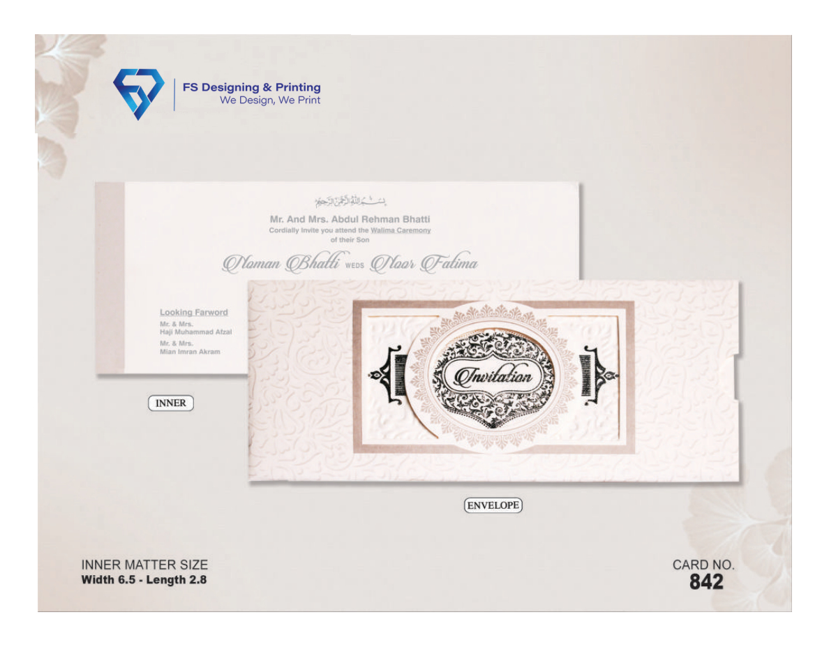 Printed by FS Designing & Printing, this wedding invitation is perfect for those