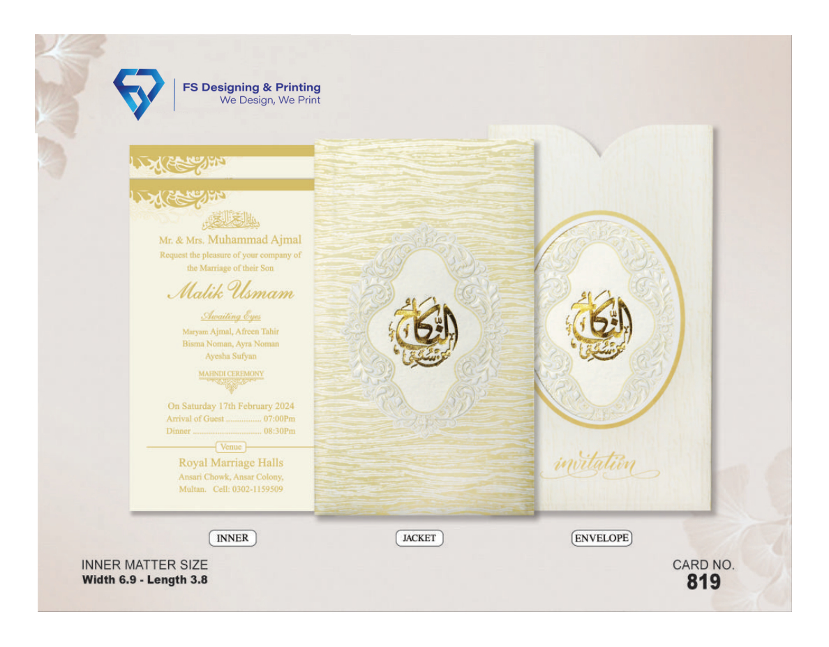 Designed and printed by FS Designing & Printing, this wedding invitation is perfect for those