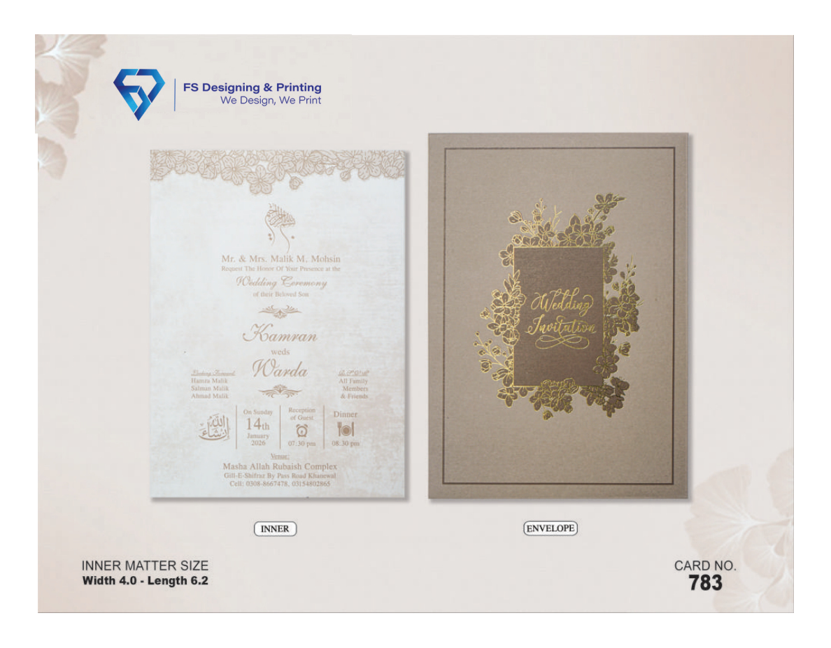 ✔ Premium taupe envelope with gold floral foil design