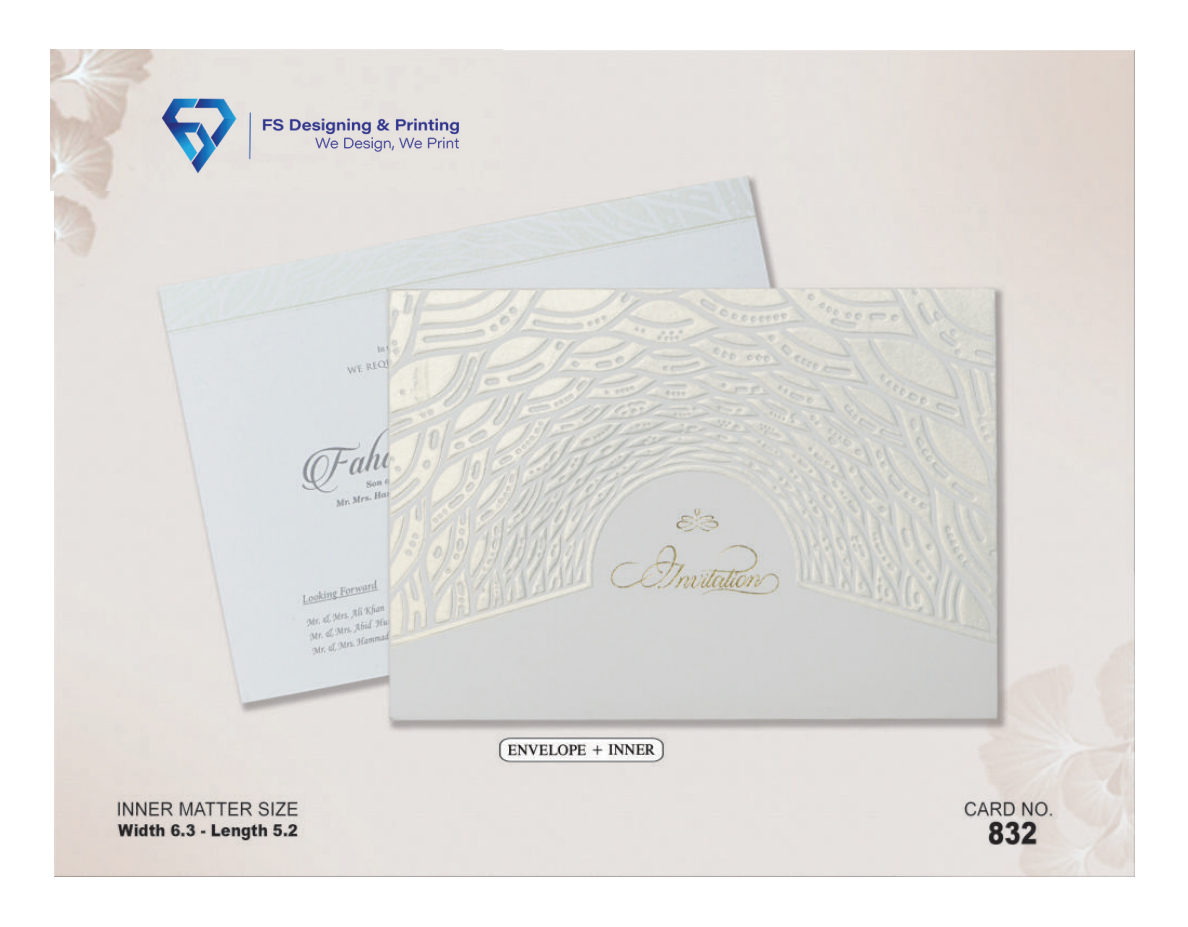 The invitation includes a high-quality printed inner sheet designed with a clean and elegant layout for wedding details. Its minimalist white theme paired with delicate embossing makes it an excellent choice for couples who prefer a timeless and classy invitation style. The matching envelope completes the set, ensuring a beautiful presentation for your special occasion.