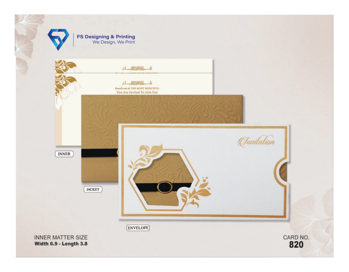 The elegant white envelope combined with a gold textured jacket creates a rich and classy first impression.