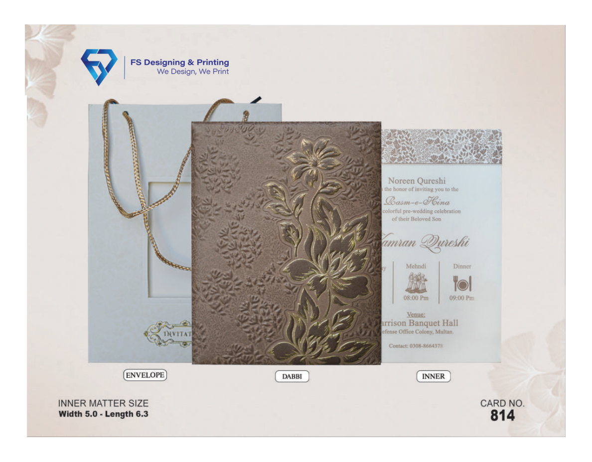 Paired with a matching envelope and a neatly printed inner card, this invitation is perfect for weddings, mehndi, nikah, walima, and formal functions. The sturdy box design makes it a beautiful keepsake for your special day.