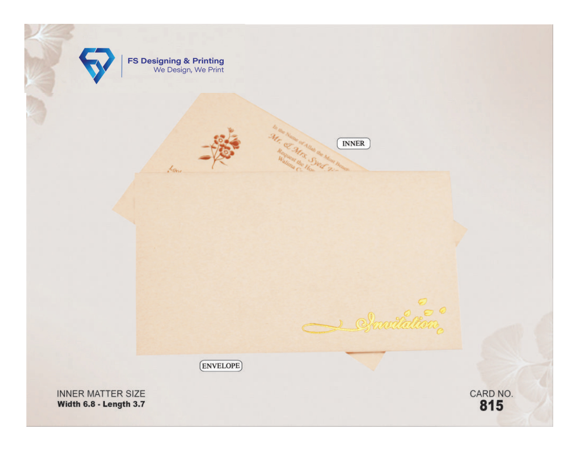 Soft, elegant, and timeless — this peach wedding invitation card is designed for couples who love simplicity with a touch of warmth. The pastel peach envelope with gold foil “Invitation” detailing gives a graceful and premium look.